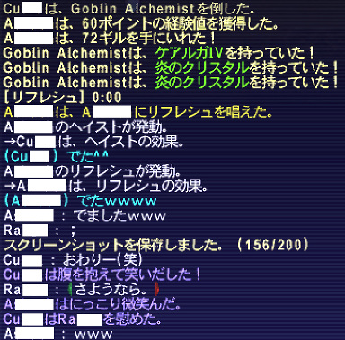 その後、Maさん(Tar♀)が最近【青魔道士】をはじめて Maさんはめでたく【癒しの風】を習得して、Inさんは【ログアウト】。