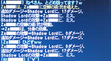 ちなみにMaさんも付いて来て下さったのですが、 (Maさん) つまんない!!!つまんない!!!! とかのたまった挙句、スネてジャガイモ剥いてた模様。(リアルで そんなイモタルを尻目に、みるみる減っていく【闇】【王】のHP。